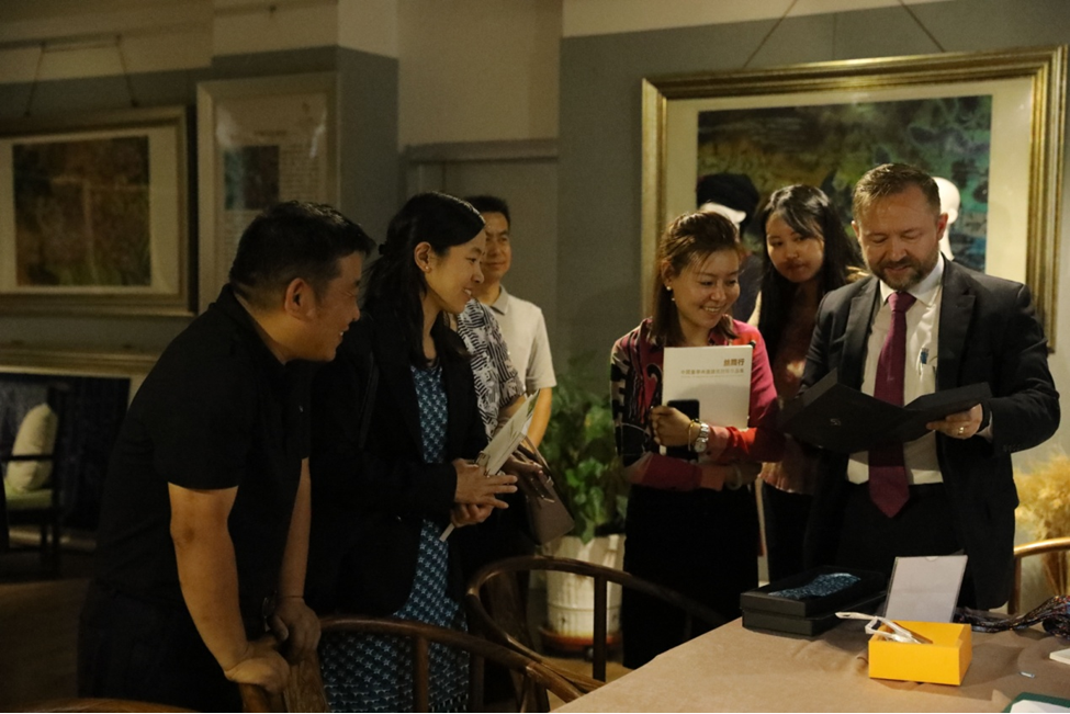 座谈结束后,美国驻华大使馆官员一行在国际交流处负责人陪同下,参观了我校天佑美术馆和染缬艺术博物馆。