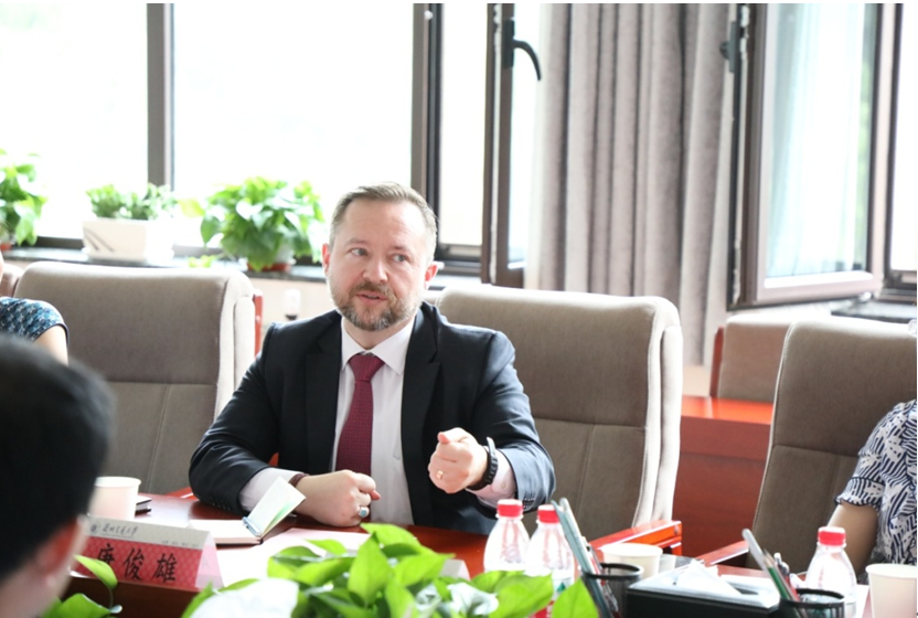 美国驻华大使馆二等秘书唐俊雄先生(Adam Stevens)对我校在轨道交通人才培养和科学研究方面取得的成就表示赞赏,表达了美国驻华大使馆发挥桥梁纽带作用,加强两国交通领域专家交流,促进我校与美国相关机构更加深入合作的愿望。