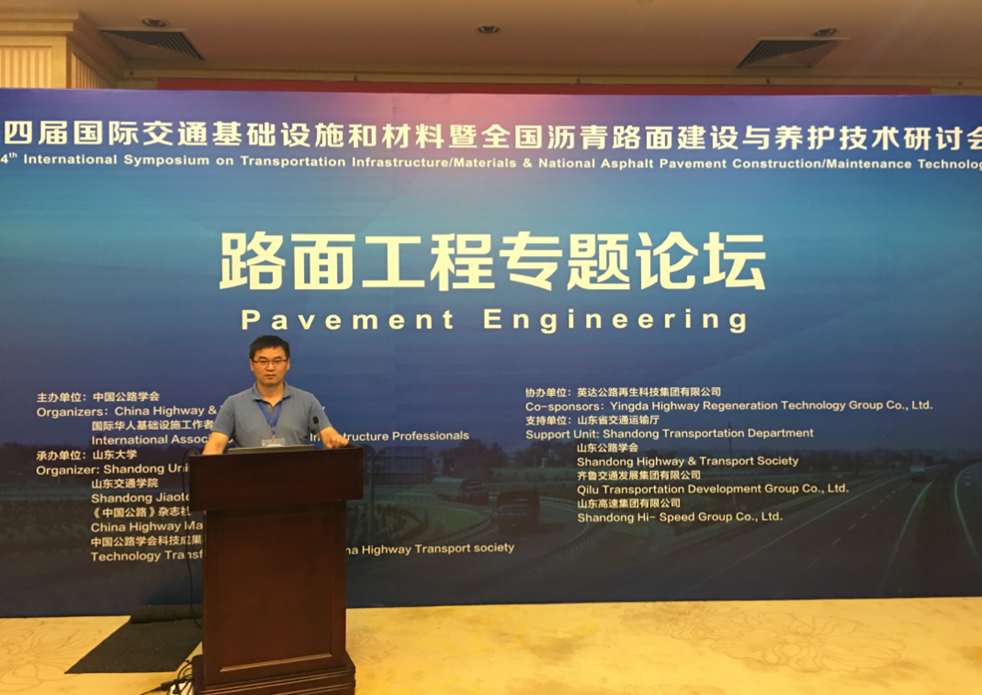7月1日至4日,土木工程学院李波教授及其团队研究生朱旭伟、王宇同学参加了在济南举行的第四届国际交通基础设施和材料暨全国沥青路面建设与养护技术研讨会,并与来自美国、日本、瑞典等国的30多名国外专家及同济大学、浙江大学、西南交通大学、北京交通大学、山东大学、长安大学、重庆交通大学等40余所高校的500余名专家学者共同探讨沥青路面建设与养护技术的发展。