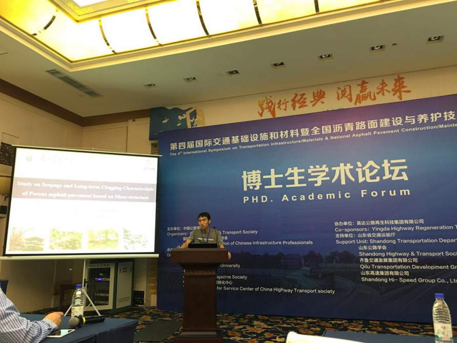 研究生朱旭伟、王宇在博士生学术专题论坛分别做了题为“基于细观结构的排水沥青路面渗流及长周期堵塞规律研究”和“过氧化氢活化胶粉的微观性能及其对改性沥青流变性能的影响”的学术汇报,向专家展示了我校研究生在路面材料方向的研究成果和学术风采。