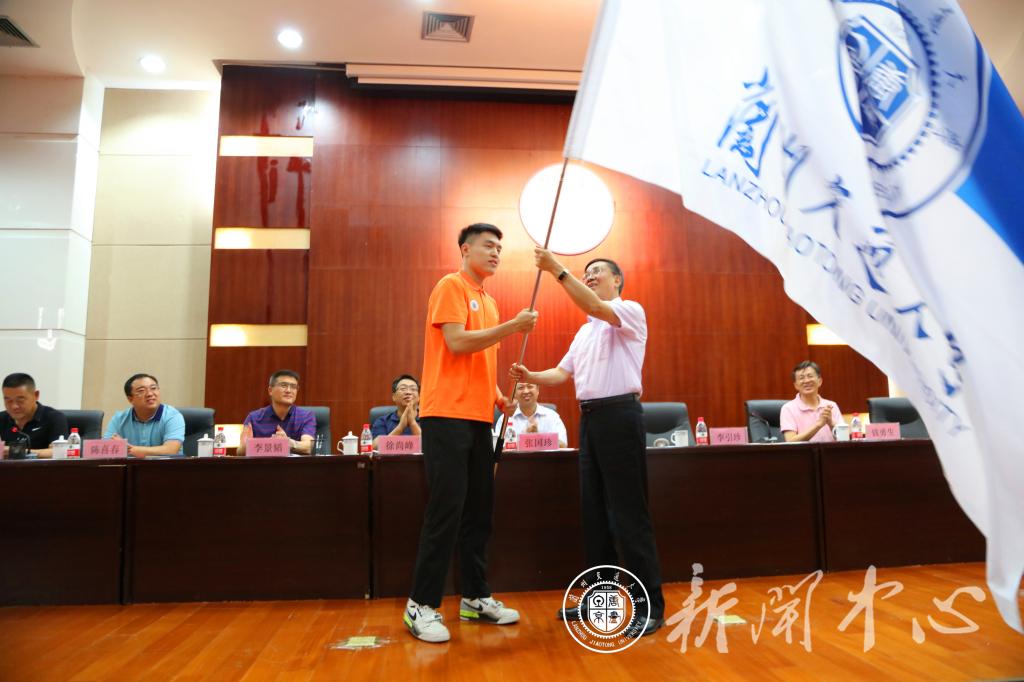 7月10日,我校参加第四届甘肃省大学生运动会代表团授旗仪式在国际会展中心报告厅举行,校长李引珍、副校长张国珍出席,党(校)办、党委宣传部、学生工作部(处)、学生公寓管理中心、体育部、校医院负责人参加会议。