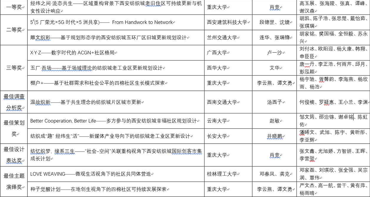 本届竞赛共有45所西部院校、1270名师生参加。共收到189份设计作品参与角逐,经过专家认真评审,最终23份作品获奖,其中一等奖1项,二等奖2项,三等奖3项,专项奖6项,佳作奖11项。竞赛在每年的6月初拉开帷幕,活动针对西部地区提升规划教育水平的需求,选择真实项目(地块),由西部地区的高校组织本校规划专业研究生和高年级学生进行规划设计实践。活动旨在通过竞赛促进科学发展理念的传播,促进东西部大学城市规划专业之间的交流,提高西部大学城乡规划专业设计水平。