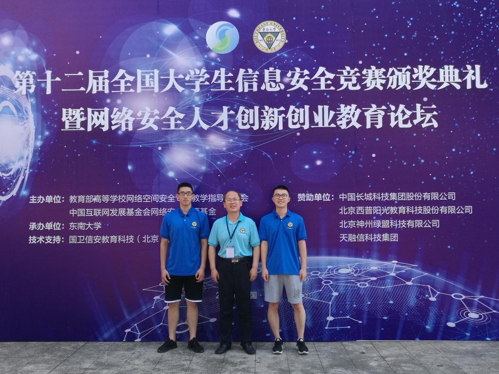 8月1日至8月3日,由教育部高等学校网络空间安全专业教学指导委员会主办,东南大学承办的第十二届全国大学生信息安全竞赛作品赛决赛在南京举行。由我校李启南老师指导,电信学院周睿康、王方权、秦军浩和交通运输学院刘囡同学共同完成的作品《电子病历区块链》获得全国三等奖。该作品是今年我省参赛高校唯一进入决赛的作品。