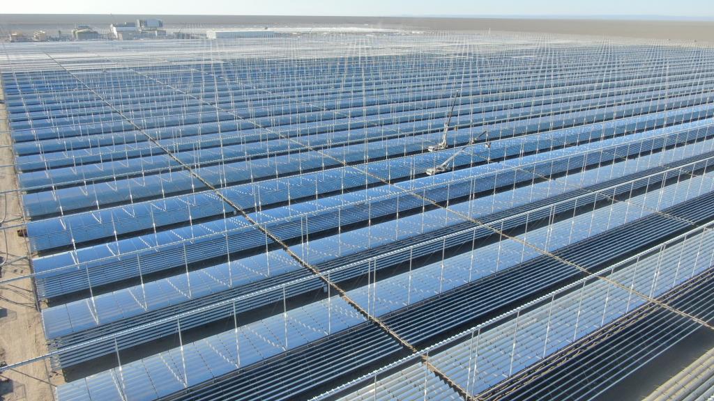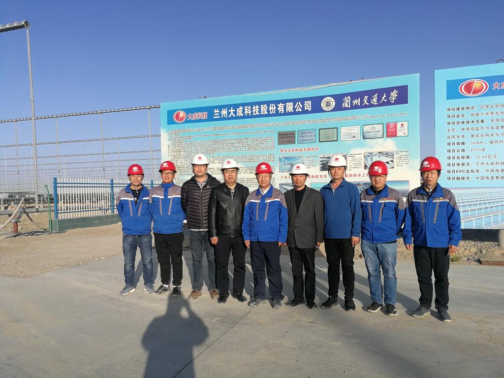 座谈会后,米根锁一行在范多旺教授陪同下,一同详细参观了建设项目现场。据悉,兰州大成敦煌50MW光热发电示范项目于2016年9月成功入选我国首批光热发电示范项目,项目位于甘肃省敦煌市七里镇光电产业园区,总投资约16.88亿元,规划装机容量50MW。项目总体技术方案采用自主知识产权的兰州大成线性菲涅尔式太阳能聚光集热系统,使用熔盐作为高温集热、传热、储热和换热介质,正常天气可实现 24 小时连续发电,项目按设计指标建成后可将间歇式太阳能变成连续输出的基础能源,是能源生产过程的一次革命,也将助推甘肃光热发电技术的大规模商业化应用。项目将建成世界第一座熔盐线性菲涅尔式太阳能光热发电商业化示范电站,将为国家能源战略安全建设方案提供“交大&大成”选项。