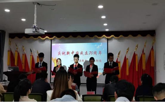 数理学院举行了“庆祝新中国成立70周年--重温经典,诗歌朗诵”比赛。活动现场,9支参赛团队饱含激情,神采奕奕,用铿锵有力的声音讴歌伟大祖国不朽的历史进程,颂扬70年来祖国取得的辉煌成就,表达着对祖国母亲的深厚情谊和美好祝愿。现场气氛热烈欢快,在慷慨激昂的朗诵声中,这些诗篇化作一个个音符,震撼着与会党员的心灵,激发了爱党爱国情怀。评委老师们综合各方面表现对参赛团队进行了现场评分,并为获奖集体颁发了荣誉证书及奖品。活动最后,学院负责人作了总结讲话,激励学生党员积极发扬中华民族传统文化,让红色精神落地生根,让红色文化不断浸润人心。此次活动进一步激发了学生党员传承红色基因、延续文化血脉的使命意识,也进一步巩固了基层党组织的凝聚力、影响力和号召力。