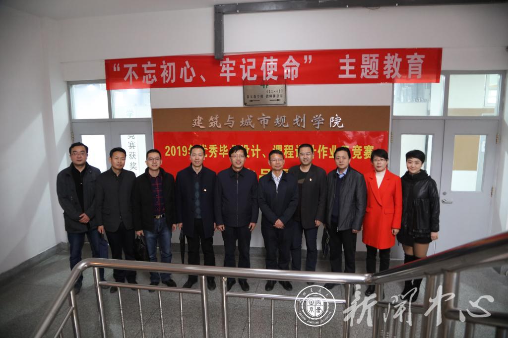 11月19日下午,校党委书记杨子江、副校长陈兴冲以及学校相关职能部门领导等来到第六教学楼建筑与城市规划学院固定教室区,参观了建筑学院“不忘初心、牢记使命”主题教育2019年优秀毕业设计、课程设计作业及竞赛作品展。