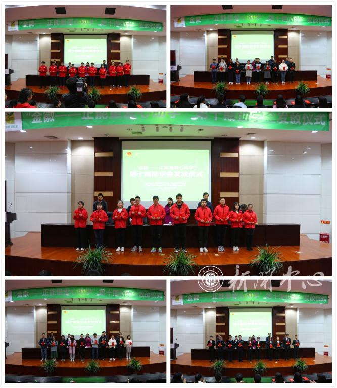 为落实《甘肃共青团助力脱贫攻坚实施意见》精神,推动实施“青少年助学助困计划”和《甘肃省中长期发展规划(2018-2025)》有关要求,11月20日,由共青团甘肃省委、甘肃省青年联合会、甘肃青年企业家协会、甘肃金徽酒股份有限公司联合发起的“金徽—正能量爱心助学”第十期助学金发放仪式在兰州交通大学举行。团省委副巡视员杨晓蓉、我校副校长马军党、金徽酒兰州销售有限公司副总经理李娜出席仪式,并为来自省内五所高校的家庭经济困难学生发放助学金。