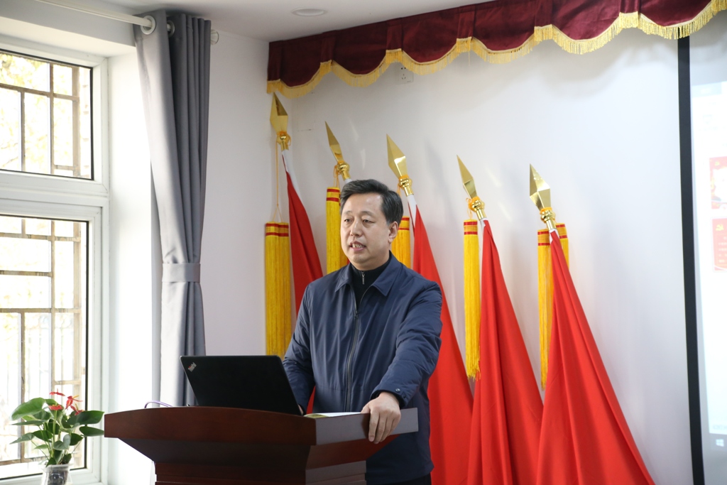 活动最后,马军党对本次主题党日活动给予了充分肯定,对三位党员同志的讲解和活动组织者提出了表扬,同时要求各位党员要继续深入学习理解“习近平新时代中国特色社会主义思想”的深刻内涵。并以“如何做一名合格的共产党员”为主题作了回应讲话,对在座的学生党员提出了“九个要”的希望:要坚定理想信念、要增强组织观念、要牢记党的宗旨、要遵守党的纪律、要厚植爱国情感、要争当学习楷模、要做好全面发展、要注重团结协作、要强化自律意识。嘱咐学生党员要铭记党史校史,将自己的理想与国家战略发展相融合,努力学习,为国为校争光。