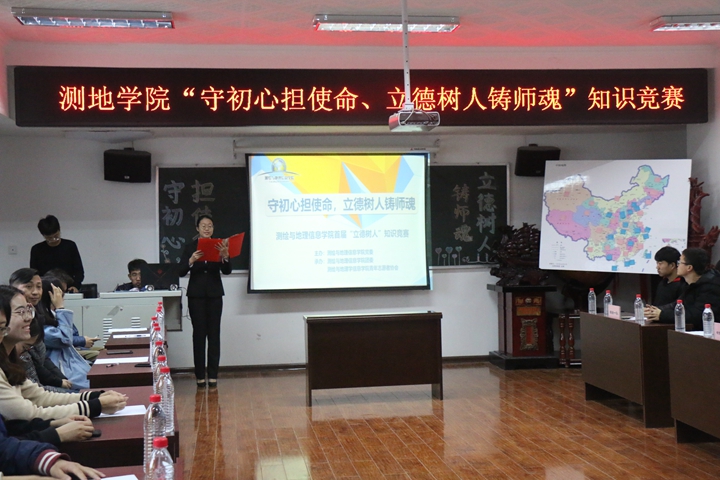 为深入学习贯彻习近平新时代中国特色社会主义思想和党的十九届四中全会精神,切实落实立德树人根本任务,11月29日下午,测地学院组织开展主题教育“守初心担使命、立德树人铸师魂”知识竞赛,测绘、遥感、地信专业和研究生共8个师生参赛队参加了比赛。