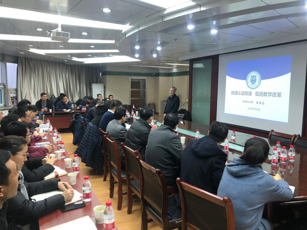 为进一步加强对工程教育专业认证工作精髓的认识和理解,做好下一阶段自评报告撰写及专业认证材料准备等各项工作,1月5日上午,天津大学胡绳荪教授应邀来我校在科技楼十楼会议室作了题为“研读认证标准,促进教学改革”的专业认证专题报告。教务处、材料学院、机电学院、自动化学院、运输学院相关人员聆听报告。报告会由教务处处长张友鹏主持。