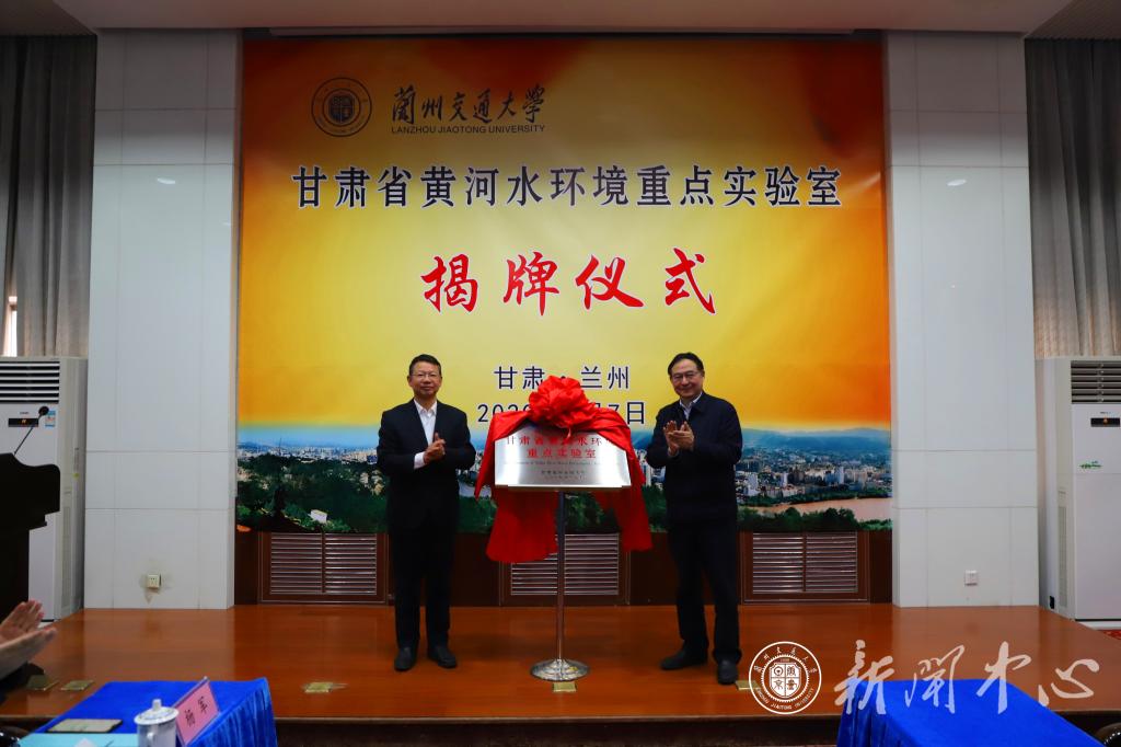 傅小锋与陈兴冲共同为“甘肃省黄河水环境重点实验室”揭牌。