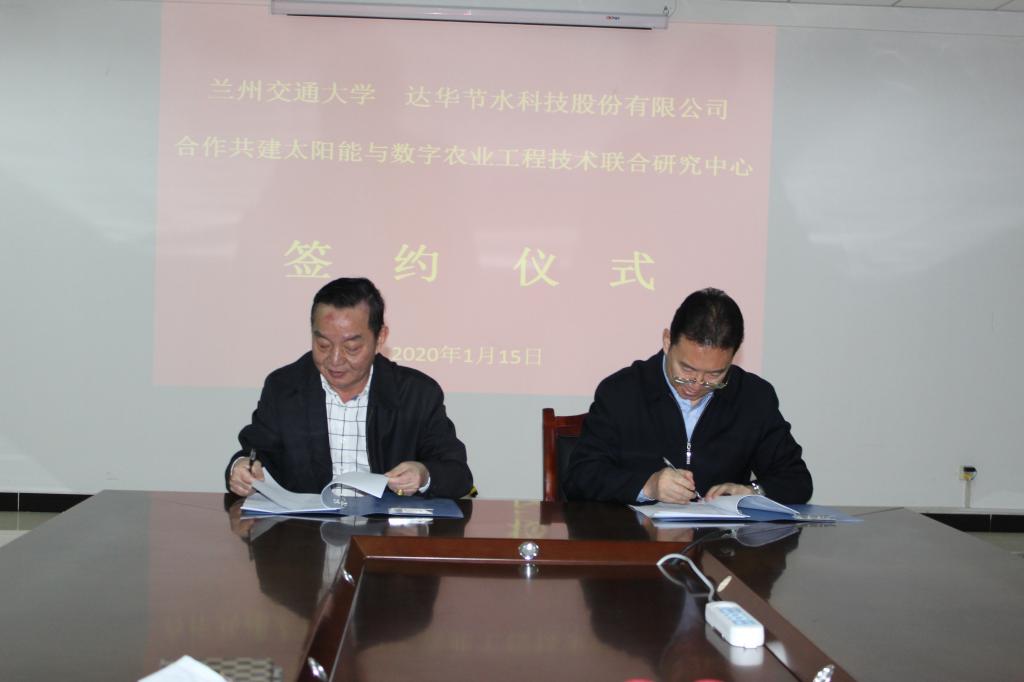 随后,董海鹰和潘怀聪分别代表兰州交通大学和达华节水科技股份有限公司签订了共建“太阳能与数字农业工程技术联合研究中心”的协议并为中心揭牌。