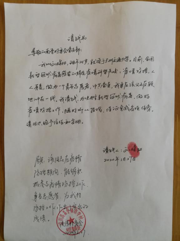 “穿上防护服,就不再是一名学生,而是一种责任和担当,应该到更需要的岗位上去,力所能及地做一些事情,并从中得到历练。”说起主动请缨的初衷,刘晓阳同学如是说。“虽然这次疫情来势汹汹,但通过大家的共同努力,我们一定能战胜疫情。”