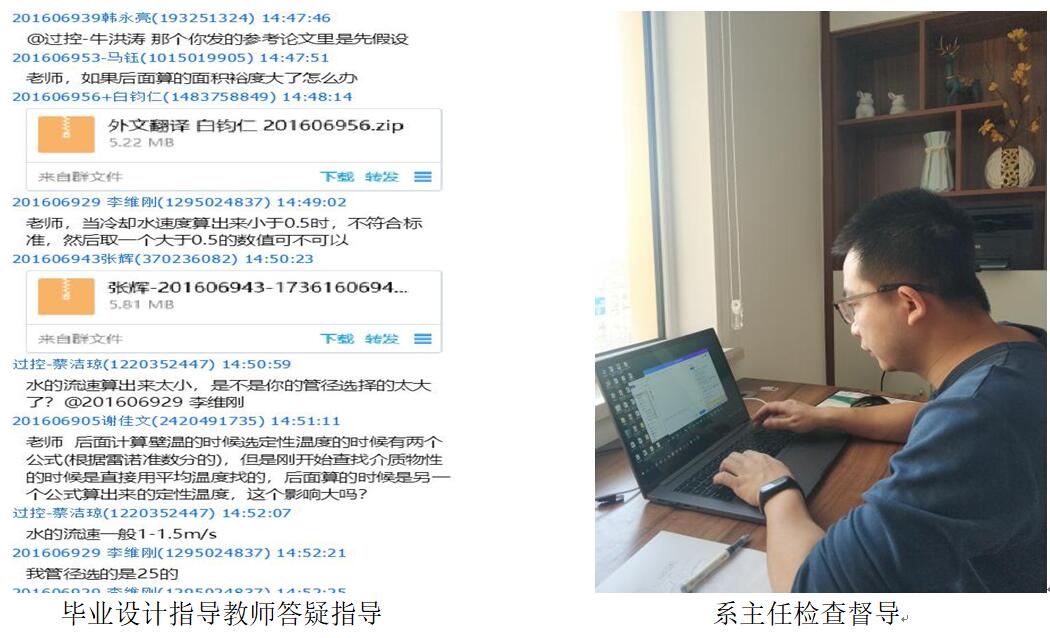 二是加强本科实践教学督导检查力度。全院所有毕业设计(论文)指导教师前期已建立QQ群、微信群进行答疑指导,本科实践教学领导小组成员自3月初开始就进入答疑指导群检查答疑情况,并于每周五前将毕业设计答疑情况汇总反馈至学院教务办公室。