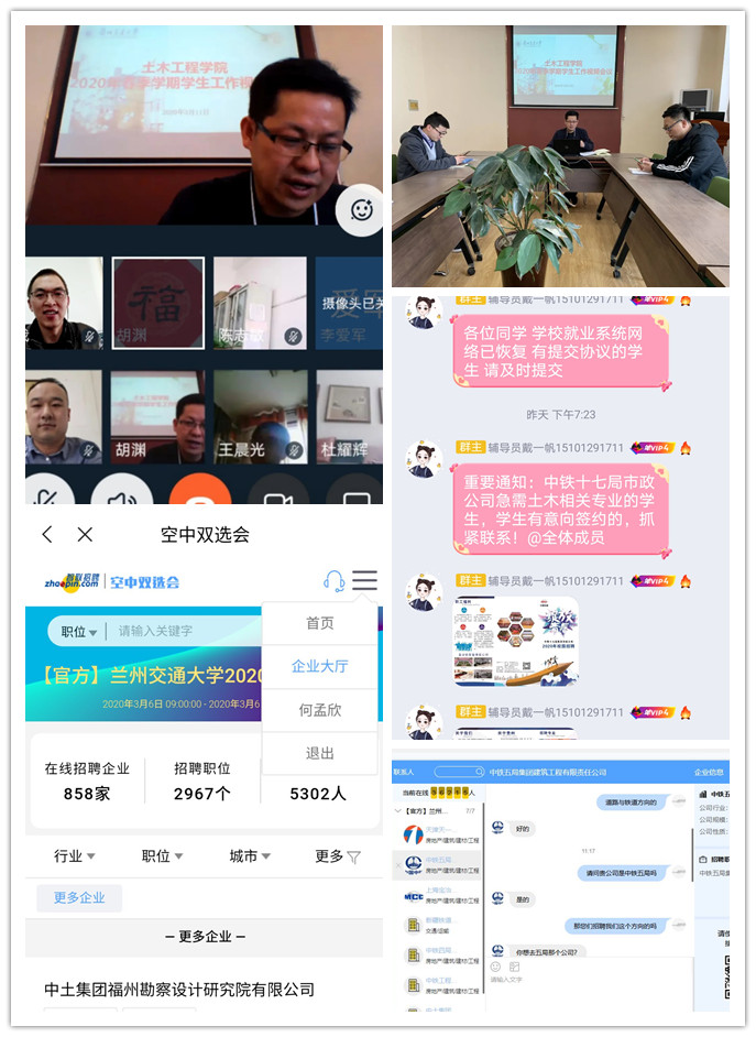 学院提前做好毕业年级学生就业情况的最新统计,摸清学生就业意向,引导学生转变就业观念,认清就业形势,把握就业机会;提供就业咨询指导,广泛搜集就业信息,及时线上信息发布;实行“互联网+就业”模式,主动联系用人单位参加空中双选会,引导毕业生开展线上注册、远程视频面试、网上签约,实现了毕业生“在家找工作,网上谋岗位”的目标,做到了就业工作不停歇,最大限度地降低疫情期间学生就业的不良影响,切实保障学生的切身利益。