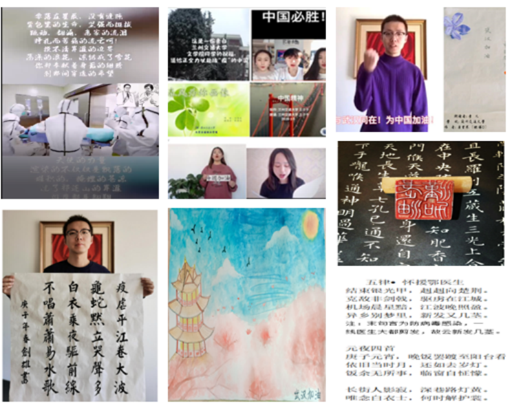 “风声雨声读书声,声声入耳。家事国事天下事,事事关心。”一篇篇昂扬雄健的文章,一个个鲜活生动的视频,展示着同学们积极向上的青春气息,表达着对于疫情防控的真诚关切,也体现了当代大学生群体的家国情怀。