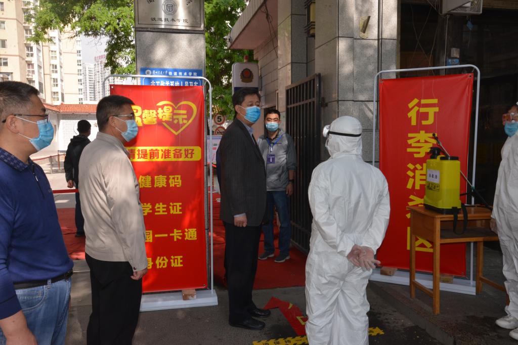 按照学校开学返校方案,铁道技术学院学生于5月25日至5月30日分批次错峰返校报到。为确保学生返校报到各项工作的有序规范推进,5月25日上午,副校长马军党来到铁道技术学院返校报到点检查学生开学返校报到情况,学生处、学院班子成员及相关工作人员陪同。
