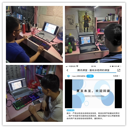 电信学院通过腾讯课堂召开欢迎2016级本科生复学返校的视频会议,对504名2016级本科生的顺利返校表示了热烈的欢迎。同时,辅导员潘老师对近期学生返校后的封闭式管理进行了相关的介绍和强调,包括桃海公寓住宿学生封闭式管理办法,返校后学生的健康作息、卫生管理,封闭时期宿舍同学的相处方式,出入校园的管理方案,每天“晨午晚”的辅导猫签到汇报、报平安以及每晚班主任的查寝工作。潘老师还向同学们通报了近期学校关于教学、就业、考研以及毕业管理的相关内容,希望同学们可以克服困难,认真完成各项学校安排的相关任务,确保每位同学们顺利毕业。