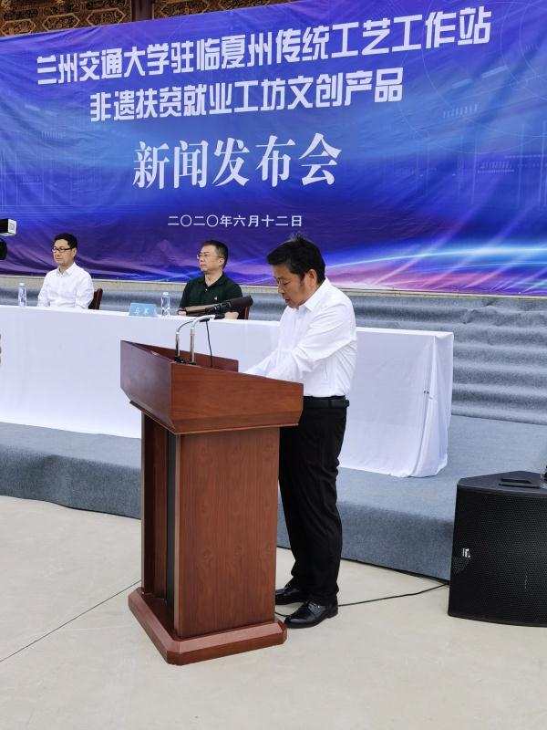 6月12日下午,兰州交通大学驻临夏州传统工艺工作站非遗扶贫就业工坊文创产品新闻发布会在临夏县召开。兰州交通大学副校长党建武、甘肃省文化和旅游厅副厅长周奉真,临夏州人民政府副州长马军出席了会议。