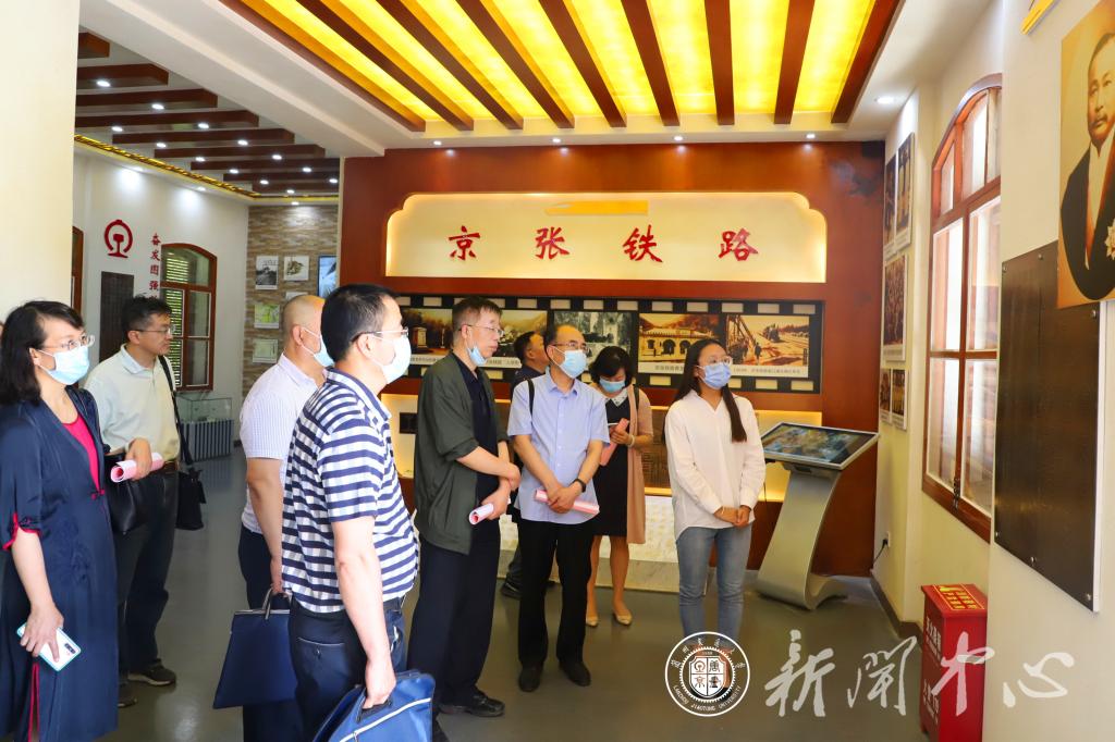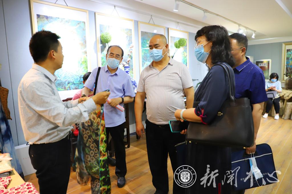 在校园参观中,党委宣传部负责人从我校浸润在人文环境中的“天佑精神”缓缓道来,向考察团介绍了学校文化建设、旅游资源的情况。从传承铁路精神的天佑园到青龙桥车站,从天佑铁路主题展览馆到自然人文景观长亭,再到丝绸之路染缬艺术博物馆,考察团认真聆听。在丝绸之路染缬艺术博物馆,考察团被染缬这一丝绸之路的古老技艺深深吸引。学校的染缬文化研究,不仅让大众重新审视了那个时代丝绸贸易的辉煌,更重要的是给古老的染缬注入时代的文化元素,通过文化开发,创造出非遗文创产品,并帮助贫困地区积极脱贫。