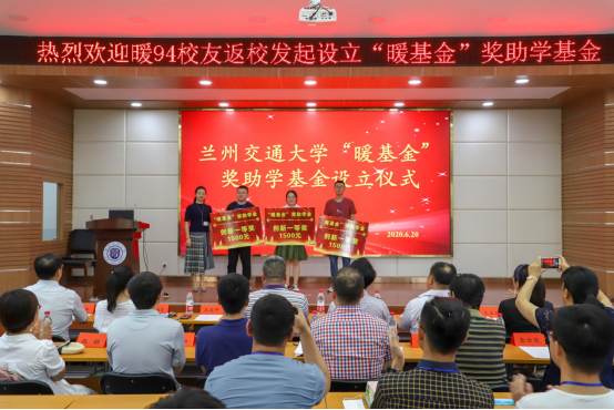 捐赠环节中,学校教育发展基金会基金管理科科长王正珍对学校教育发展基金会的情况做了介绍,暖94校友代表、甘肃省第六建筑工程公司安装公司万鹏程副经理代表‘暖基金’发起人对暖九四班级情况和基金设立初衷做了介绍。随后举行了‘暖基金’发起资金捐赠仪式和颁奖仪式,环境学院副院长张洪伟宣读了表彰决定。2020年“暖基金”奖助学基金共奖励学生9名,发放奖金1.35万元。获奖代表建环16级学生胡广进、董媛媛、于传波3位同学畅谈了获奖心得、表达了感激之情,并鼓励学弟学妹以梦为马、不负韶华。
