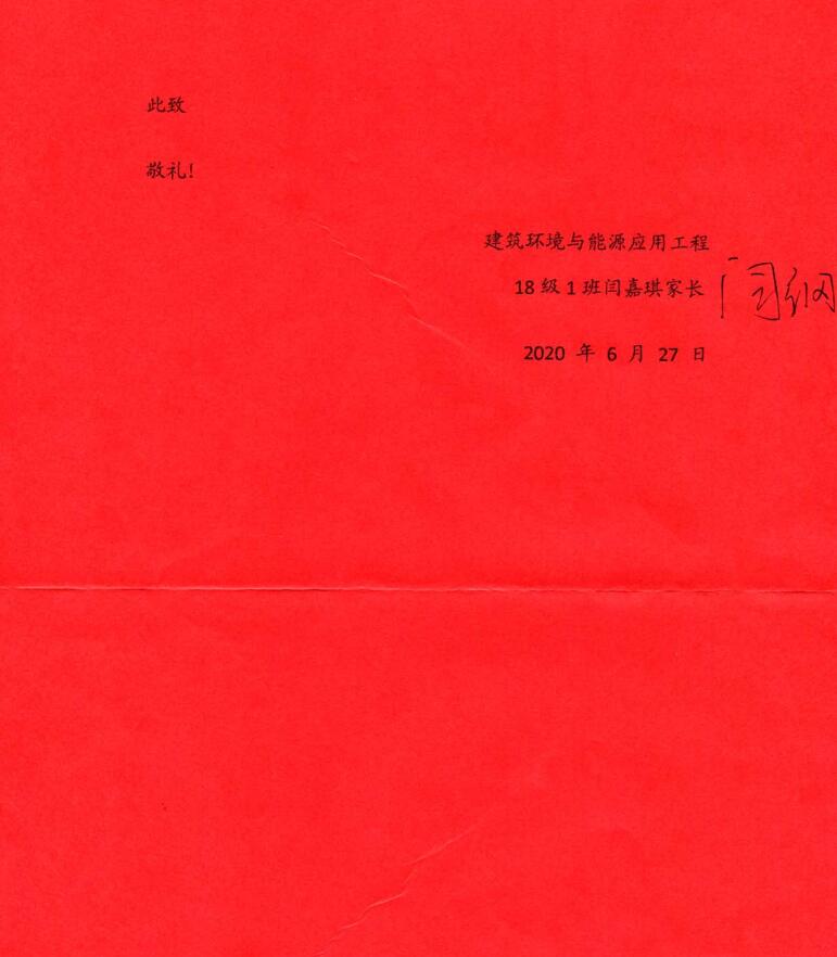 闫嘉琪的家长在信中写到,“新冠”无情,“园丁”有爱。狡猾无情的新冠病毒在学生即将返校之际,再次肆虐了吉林省吉林市,破碎了期待与同学们过集体生活的闫嘉琪同学的返校梦,落寞失望、担忧学习一时间让孩子产生了极大的焦虑。病毒是无情的,但远方的母校并未忘记每一位未返校的学子,母校的老师更是心系每一位未在课堂的学生,辅导员董康乐老师给建环专业每一位未返校学生逐一的打着电话,不要担心、不让一个学生掉队等暖心的话语让孩子焦灼的心情平静了许多,但线上授课无法等同线下,缺少近距离沟通的核心课、难课——《传热学》又让孩子一筹莫展,此时此刻每日奔波课堂的刘智勇老师并未忘记班上还有一位未返校的特殊学生,更是担心孩子线上听课、线下自学的学习效果,于是他在课程即将结束之际连续几日给闫嘉琪同学单独串讲课程重点难点知识、解答学生疑问,使闫嘉琪同学终于放松了心情,重见昔日校园里的欢快笑容。