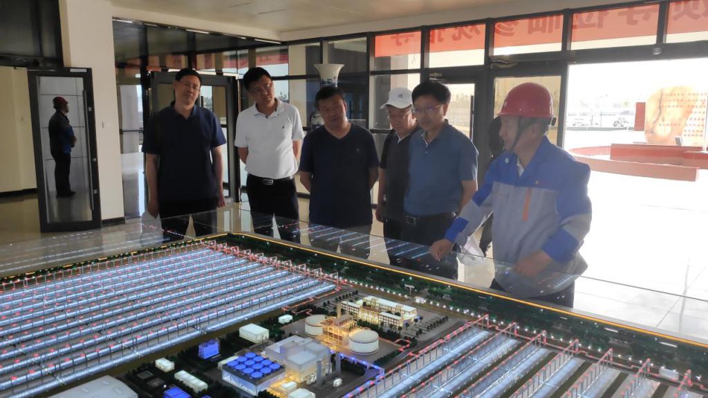 杨子江一行现场参观了聚光集热场、熔盐储换热岛、汽轮发电机组及电站主控室等电站主要设施及部分装置设备工作过程,在主控室通过监控大屏观看了电站实际发电运行过程和参数,了解了电站通过大规模的聚光储热,将间歇式太阳能转变成了可持续供能的优质清洁电能的重大意义。