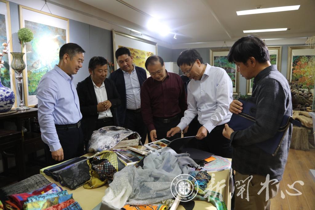 董洪亮一行先后调研了我校植物源生物农药工程技术研究中心,了解沈彤团队的研究成果;参观了丝绸之路染缬艺术博物馆,对一件件展示丝路文化、表现浓郁地域特色的染缬作品表示称赞;走访了轨道交通信息与控制国家级虚拟仿真实验教学中心、创业创新基地,并与师生代表进行了深入交流。