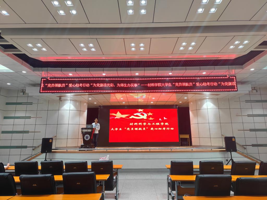 为充分发挥大学生“党员领航员”的先锋模范带头作用和榜样示范引领作用,5月28日下午,材料学院党委在五教萃英厅组织开展大学生“党员领航员”爱心助考行动。5名大学生“党员领航员”进行了分享,学院大一大二全体同学参加了活动。