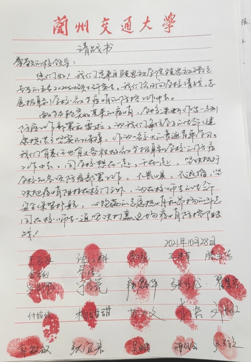 志愿助力疫情防控,共筑校园安全屏障。10月22日,马克思主义学院2020级研究生沈之翔、邢钰金、吴鹏、李文超、张兴毅5名同学有感于当前严峻复杂的疫情防控形势和学校疫情防控工作任务繁重,第一时间向学校防控办递交“请战书”,志愿参加学校防疫工作。在他们的感召下,先后有17位同学申请成为志愿者。为有序开展服务活动,学院研究生会组织同学们成立了疫情防控志愿服务队。