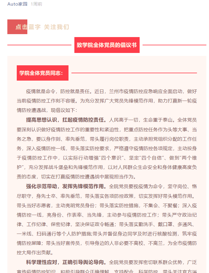 疫情就是命令,防控就是责任。自兰州疫情发生以来,自动化学院迅速反应,迅速部署,迅速集结,组织广大党员干部积极投身抗疫一线,以实际行动为群众办实事、做好事,践行党员的初心和使命,展现新时代党员的担当与责任。