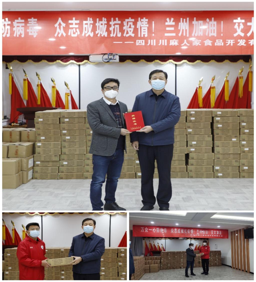 安危与共风雨同舟,真情捐助爱心永恒。四川川麻人家食品开发有限公司的善举凝聚着中华民族同舟共济、无私奉献的家国情怀和企业担当,公司的善举诠释了共克时艰和守望相助的大爱情怀,让全校师生倍感温暖,更加坚定了我们必胜的信念,相信在各级政府及学校党政的坚强领导下,在全校师生的共同努力下,在社会爱心企业和人士的大力支持下,我们一定能够打赢这场疫情防控阻击战。
