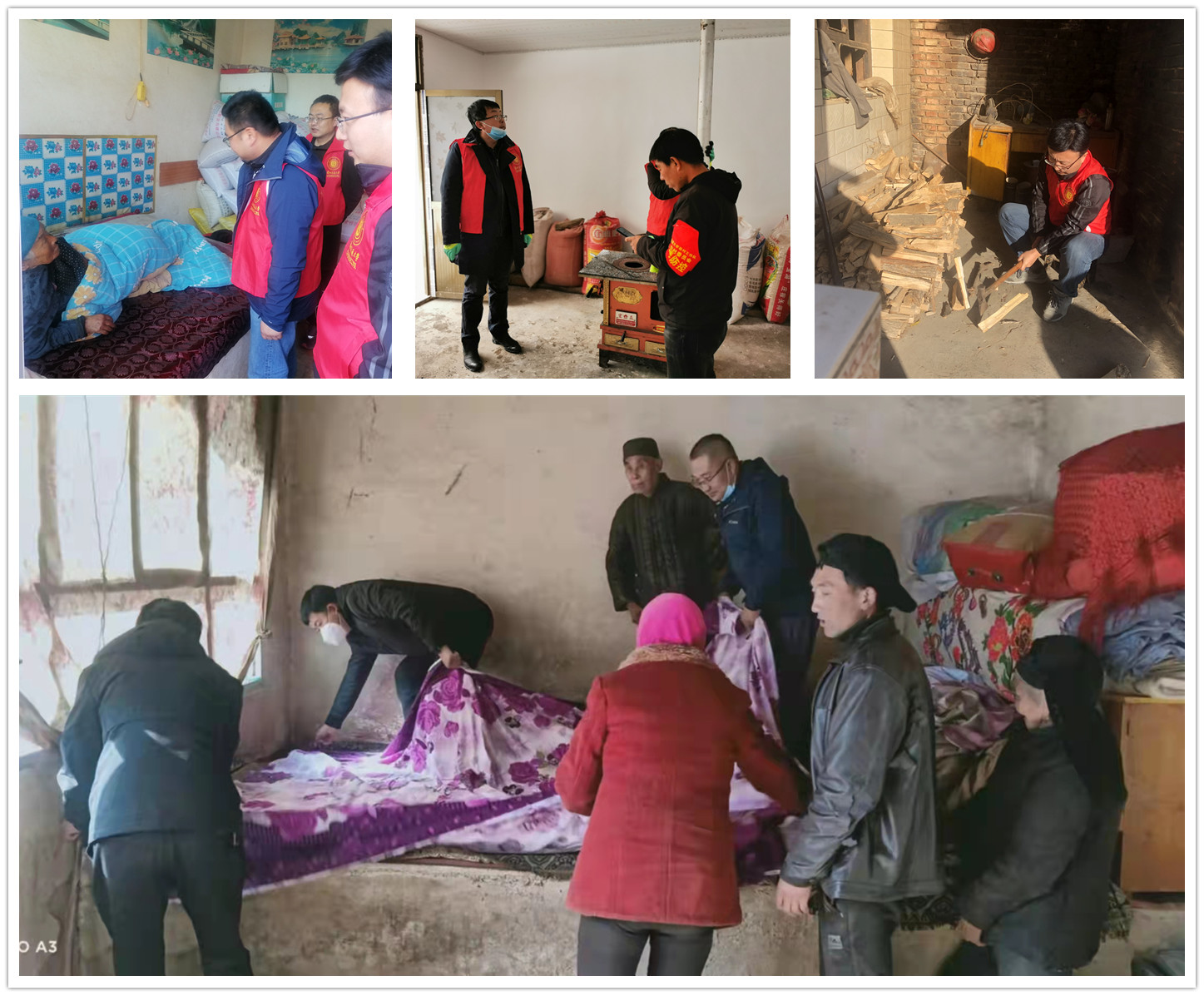 “大爷,天气这么冷,屋里怎么没生炉子呢?你这被子有点薄啊,我们帮你把新的换上吧”。为首的“红马甲”胡麻沟村第一书记、驻村队长朱俊敏进门就与老人拉起了家常。