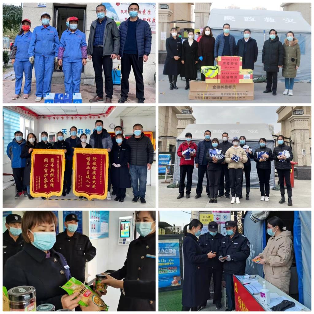 方寸之间,大爱永恒。10月30日,社会爱心人士向物业公司捐赠KN95防护口罩500只;10月31日,科技园负责人慰问天佑苑物业疫情防控一线工作人员;11月8日,热心业主向物业公司赠送暖宝宝及食品;11月9日,小区业主李先生个人向物业公司赠送“携手共抗疫情 同心守护家园”锦旗,小区业主马先生个人向物业公司赠送“防疫控疾显大爱 情系业主暖人心”锦旗;11月10日,甘肃省物业管理行业协会负责人一行慰问天佑苑物业一线防疫工作人员,并捐赠了帐篷、消毒酒精等防疫物资。这每一个令人感动的瞬间,让物业一线防疫工作人员感受到了来自社会及小区业主的深切关怀,也坚定了物业人抗击疫情的强大信念和坚定信心,坚信在社会各界的共同努力下,一定能打赢这场疫情防控阻击战。