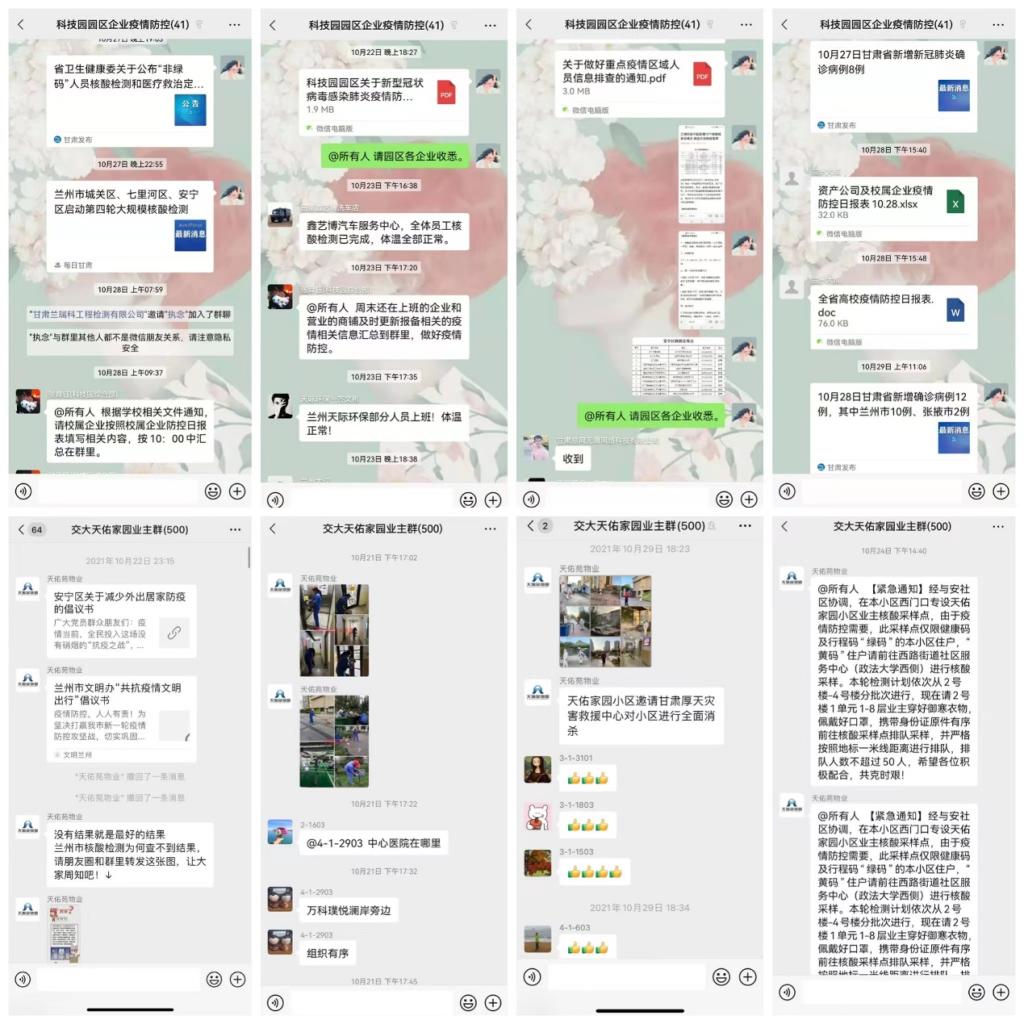 兰州市本轮疫情出现确诊病例后,我校科技园紧急研究部署,按照学校和主管校领导的安排,迅速组织开展各项务实举措,全力做好科技园园区及天佑家园保障房小区疫情防控工作,切实保障园区企业及小区业主的生产生活秩序和生命健康安全。