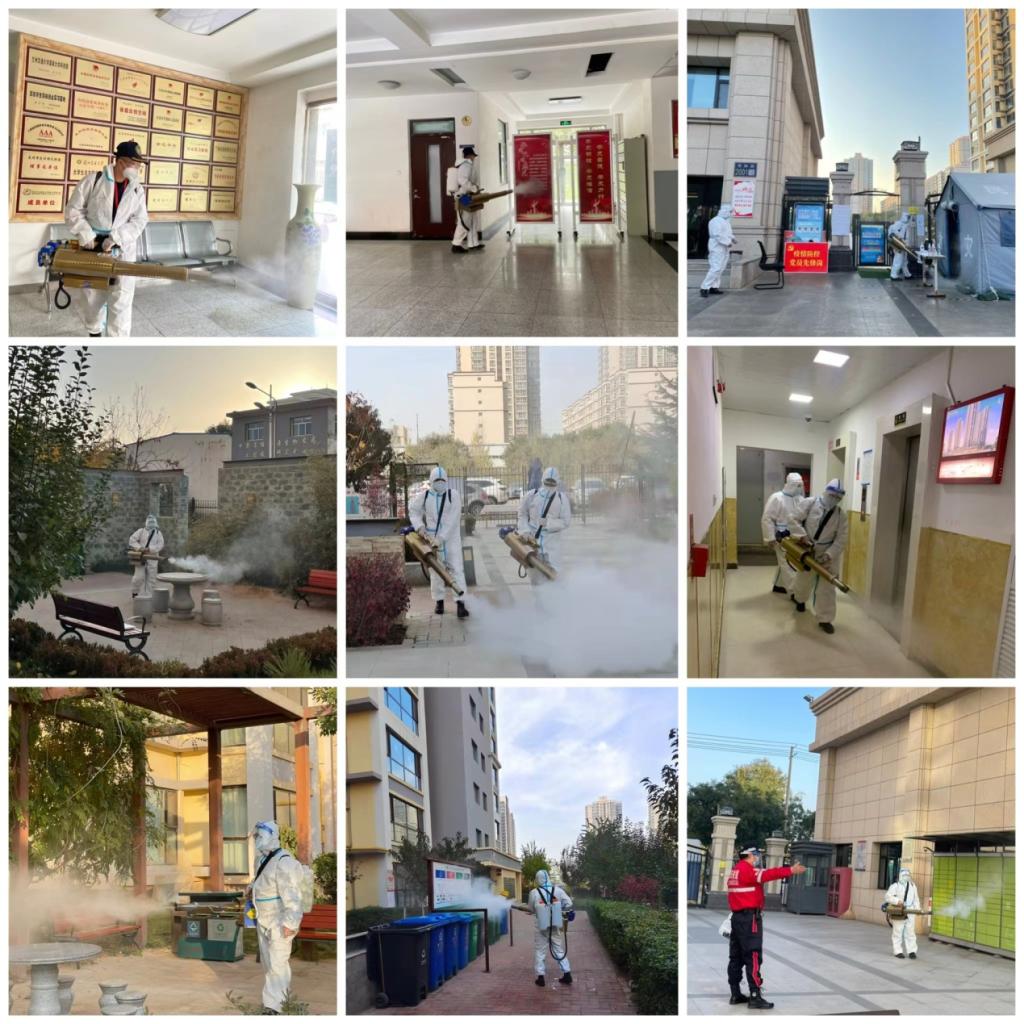 区域消杀,专业前行。10月19日起,加大了对重点区域的消杀频次,针对孵化楼办公区域内的楼梯扶手、电梯轿厢及按键、每层卫生间,以及各单元门把手、门禁按键、窗户把手、一楼大厅过道等室内区域每天4次消杀,上下午各2次;针对健身器材、休闲桌椅、垃圾桶等室外区域每天2次消杀,上下午各1次。10月29日、11月3日,分别邀请了甘肃厚天灾害救援中心和兰州山河救援队对园区及小区内的电梯轿厢、快递柜、核酸采样处等重点区域进行了全面消杀。