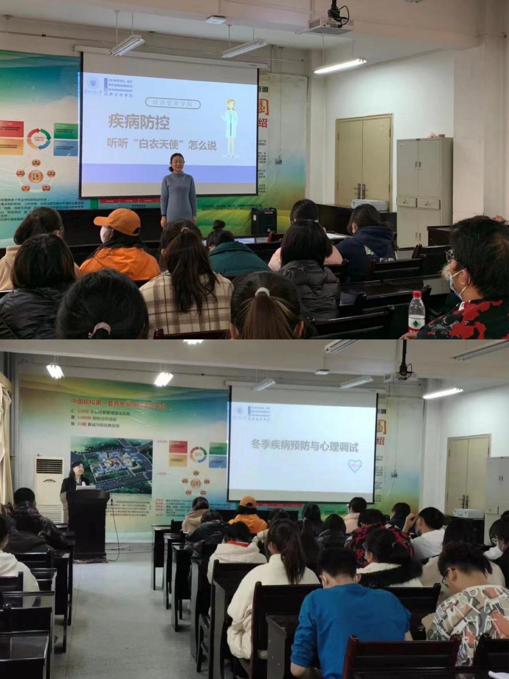 “疾病预防听听医生怎么说”冬季疾病预防与心理调适线下讲座。活动围绕“后疫情”时期的兰州市气候特点和疫情防控形势,大力宣传秋冬季传染疾病防控知识,切实提高学生卫生知识水平和疾病预防能力。同时结合“后疫情”时期学生心理困惑和行为问题,持续做好学生心理健康相关活动,切实将心理健康教育融入学生的日常学习生活。