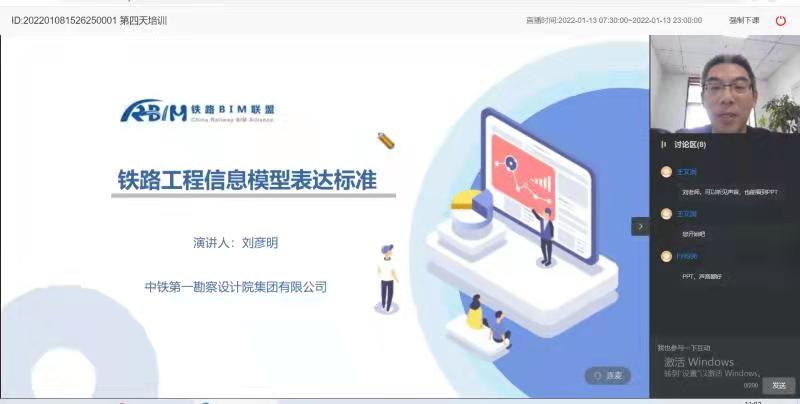 1月10日上午,培训的开班仪式在线上举行,兰州交通大学副校长党建武出席开班仪式并致辞,铁路BIM联盟秘书贺晓玲代表主办单位讲话。四电BIM工程与智能应用铁路行业重点实验室相关负责人主持开班仪式。