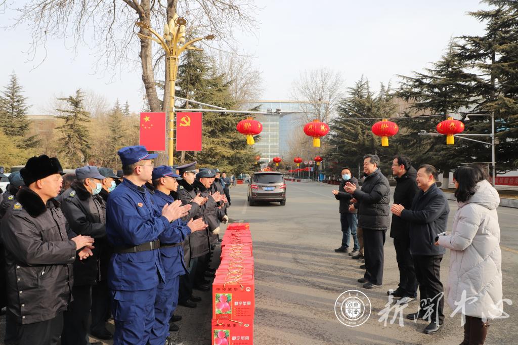 1月31日上午,新春佳节到来之际,副校长马军党代表学校,慰问了春节期间依然坚守在岗位上的一线工作人员,并看望了寒假期间在校的国际学生。马军党一行先后前往校本部门卫值班室、锅炉房、环卫中心和国际教育学院等处,向一线工作人员表示亲切慰问,感谢他们“舍小家、为大家”的无私奉献和辛勤工作,并给他们拜年,祝福他们新春快乐、虎年吉祥、身体健康、阖家幸福。
