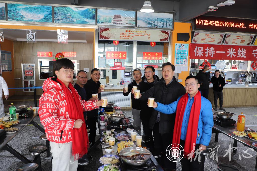 中午,马军党一行还和因疫情原因不能回家过年的留校本科生一起涮火锅,热热闹闹、红红火火共度佳节,让他们感受到家的温暖。