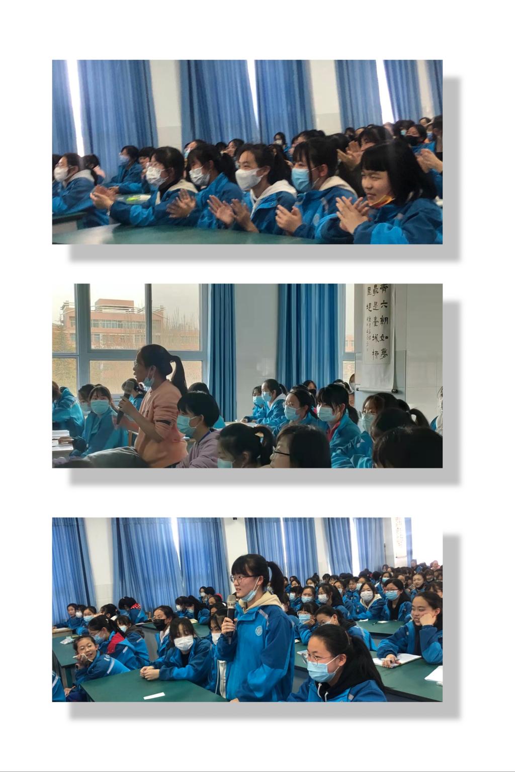 齐阳就女生生理知识、青春期的心理特点、怎样处理男女同学间的友谊等方面进行了详细、生动地讲解。并要求学生通过认识了解自己的身体、心理的变化,提高保护自己的意识、方法,从内到外来培养自己独立、向上的人格魅力。学会与人和谐相处,特别是与异性同学的相处。好好把握学生美好的时光,把注意力集中到学习上去,同时培养自己良好的兴趣和爱好,充实自己的生活内容,转移感情的注意力,顺利完成学业,做有用之人。