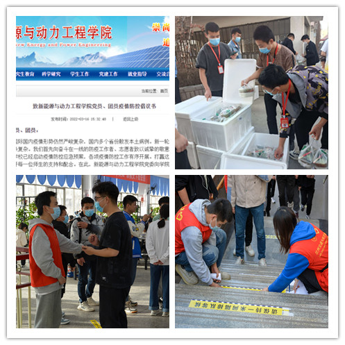 紧盯关键,积极部署,当好疫情防控“主心骨”。新能源学院一直把安全稳定放在首要位置,严格执行学生返校后的学生管理服务工作。疫情突发后,学院领导班子紧盯关键、积极部署、靠前指挥,立即启动了学院疫情防控应急工作机制。通过线上线下的形式,逐级分层多次召开党委会议、党政联席会、全体教职工大会、学生工作会和防疫主题班会,传达学校疫情防控工作要求,明确领导班子、全体教工、全体学生的疫情防控个体职责,健全完善疫情防控管理体系,认真执行封闭管理、线上教学、健康报告、宿舍管理、后勤服务、请销假制度等相关规定。以层层落实的组织领导、全面畅通的信息渠道,保障防控措施落实到位、师生交流积极到位。