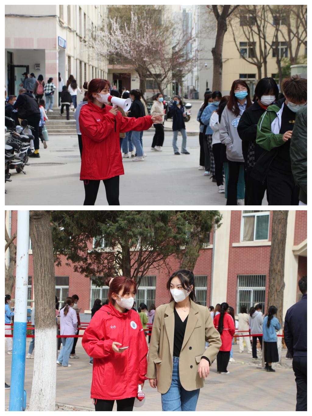 3小时招募700名志愿者,组织500名志愿者服务南北校区近2.5万人次核酸检测,10小时不间断。