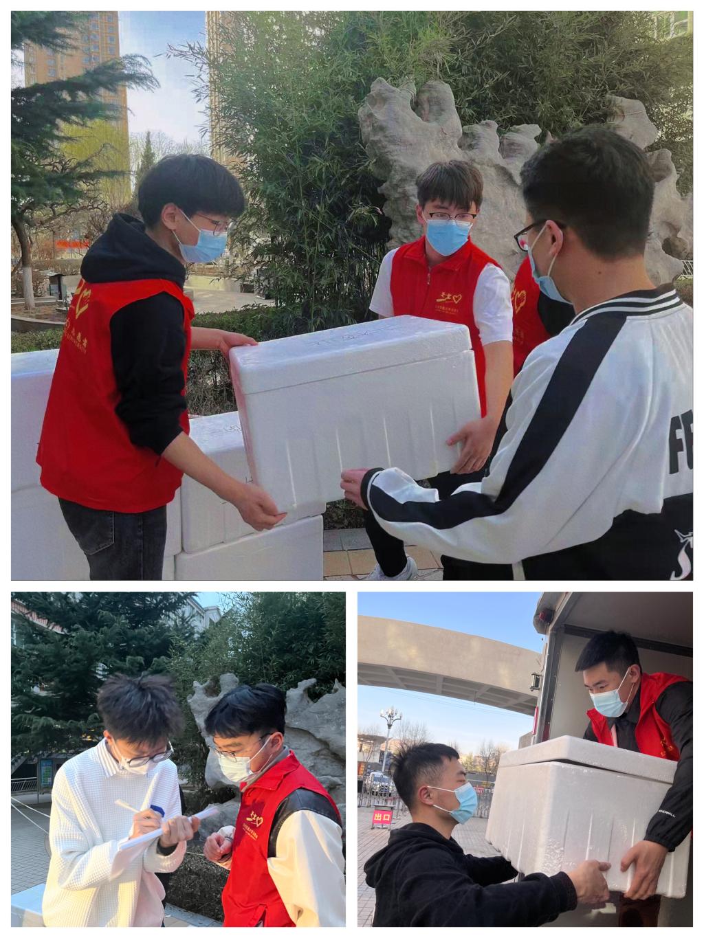由于此次学校封闭管控严格实施三区隔离,住在东方学苑的四位学生骨干在听到专职团干重启送餐队的消息后,毅然决然再次主动请战。清点份数、维持秩序、有序分发……每个环节在大家组织下利落有序。