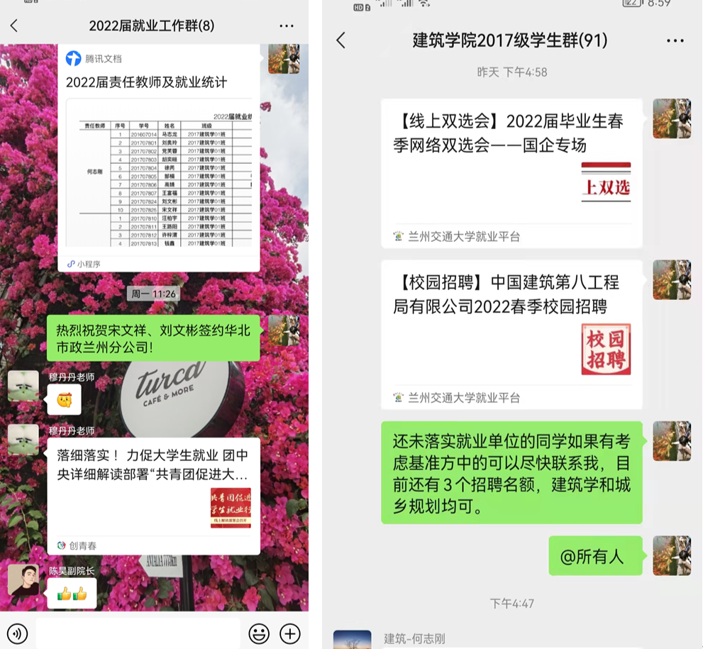 网聚毕业生,云端促就业。在疫情防控期间,持续推进2022届毕业生就业工作。通过云端指导,引导毕业生认清形势、准确定位,重点做好“慢就业、怕就业、不就业”学生做好就业引导工作。全院教师积极向毕业生推荐招聘单位,确保“一人一策”,同时,动员毕业生积极参加“空中双选会”,促进毕业生及时线上签约、顺利就业。