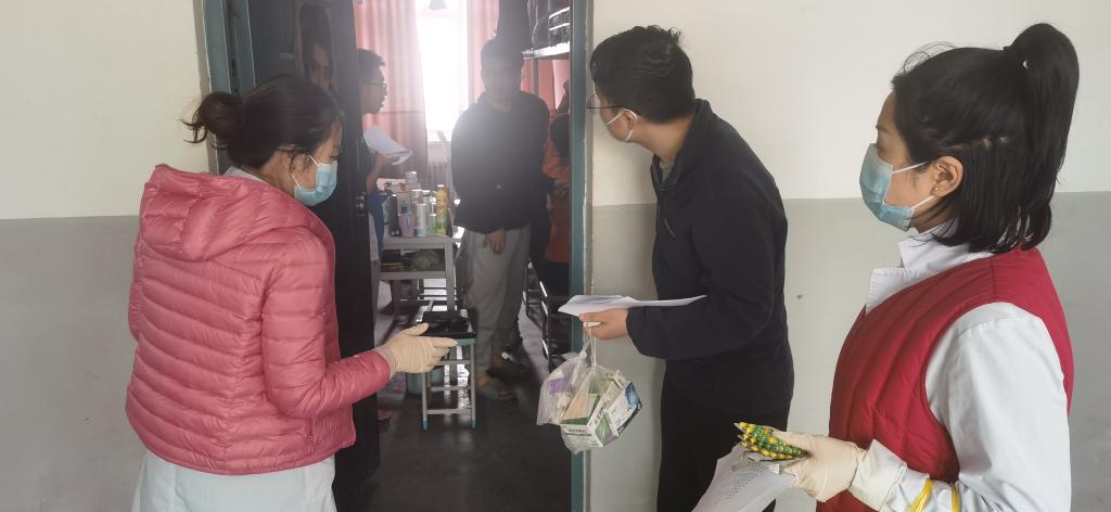 学校封闭对于本来就人手紧张的校医院来讲真是雪上加霜,只有11个人,要在这个特殊时期承担起上万学子的健康守护——这个任务的艰巨性可想而知。但就是这11个人,凭着职业的责任感和使命感,坚决执行着24小时值班制度,负责做好每日核酸采集用品的运输及发放,完成每日四五十袋的医疗垃圾的处理和清运。有些学生病了,校医院就开通了线上问诊,送药上门。对于出现一般情况发热症状的学生,医生们并没有“一刀切”式地处置,而是通过认真调查核实其实际情况、核酸检测情况、有无外出或接触史等,适时适宜地开通绿色通道,严格按照防疫要求为其诊治,解除病痛,安抚情绪。
