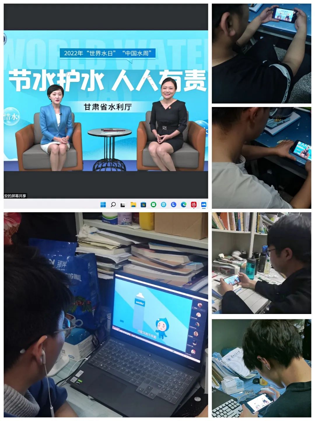 在直播活动中,甘肃省水利厅倡议全社会行动起来,节约水资源、保护水资源、珍惜水资源。我校广大青年学子纷纷表示要积极行动、加入到节约水资源的队伍中,争当节约用水的宣传者、文明用水的倡导者、科学用水的践行者。