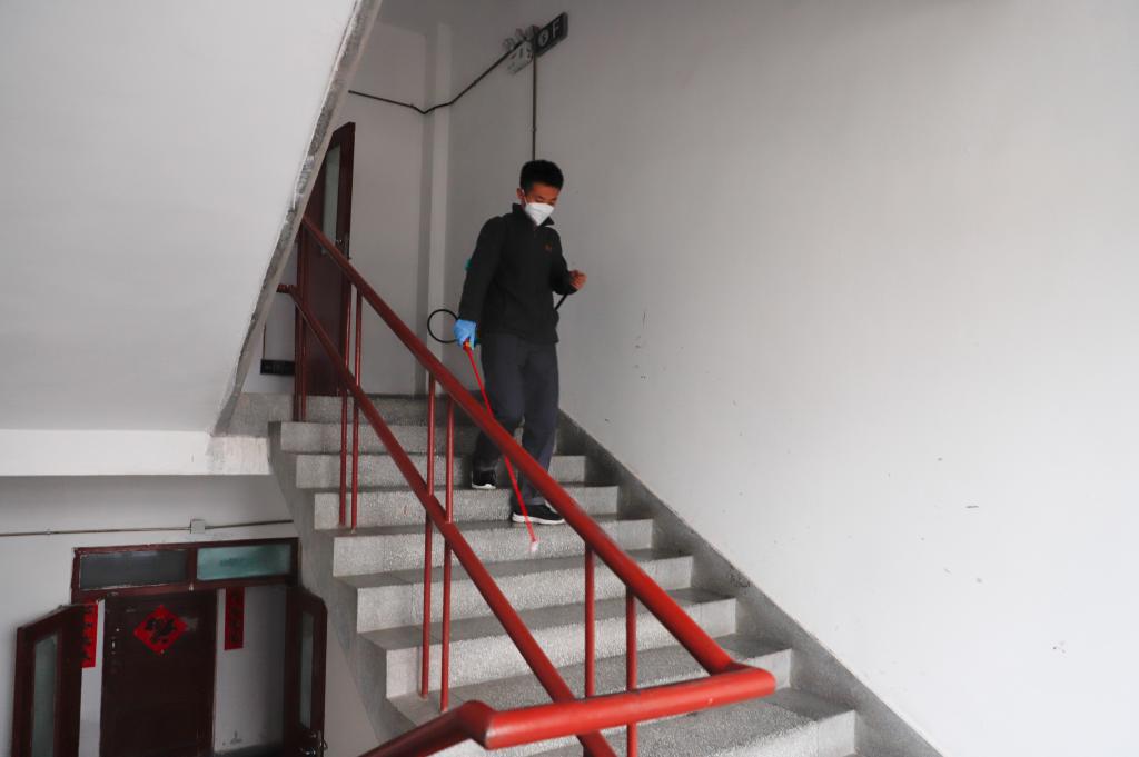 清晨六点半,楼道卫生干净整洁,宿舍楼底下的垃圾车准时到达。“疫情封校期间,学校生产的垃圾相比往常大量增加,我主要负责生活垃圾清运和地面清扫、消毒,每天早晨开始工作,将收集的垃圾装桶、转运并统一处理,确保日产日清,保持环境干净卫生。”同在九号公寓楼工作的保洁叔叔向学生记者介绍道:“特殊时期,宿舍、走廊、楼梯、门厅,各楼层通道门拉手、楼梯扶手、垃圾桶、值班室等多个地方需要进行消杀,这样才能确保学生在宿舍楼安全通行。”叔叔的腿脚不便,但是他在自己负责的区域利索的抄起扫把,左手提起簸箕,将散落一地的垃圾扫净。顺势把枯枝败叶倒进推车里,又缓缓地挪向另一处,扫起散落在校园里的尘埃。世间一切伟大的壮举总是默默完成的。从没有钢筋铁骨的超级英雄,只因心甘情愿背负责任,才拥有了无穷的勇气。