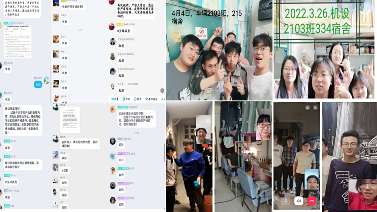 做好“云管理”,提高站位,管理工作精准到位。突发的疫情考验着每一个学工人员的管理能力,学校涉及学生的每一项措施,都需要打通“神经末梢”,确保水流到头。学院以“云数据+网格化”方式,通过辅导猫定位签到、提供宿舍合影照、工作群定时报告、班主任视频查宿等措施将工作触角延展至疫情防控的毛细血管,确保学生每天24小时“在学校、在宿舍、在线上”,筑牢疫情防控安全防线,保障广大学生身体健康和校园安全稳定。