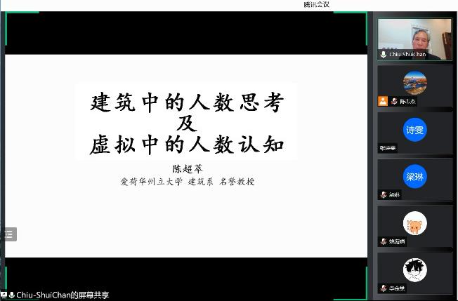 4月8日下午,应“海智计划”兰州交通大学工作站和建筑学院联合邀请,美国爱荷华州立大学建筑系陈超萃(Chiu-Shui Chan)教授以线上视频会议方式作了题为“建筑中的人数思考及虚拟中的人数认知”的学术讲座,此次讲座为我校“天佑海智云讲堂”系列活动,来自建筑学院、相关学院以及省内其他相关单位共计150多名师生参加了此次线上学术报告会。